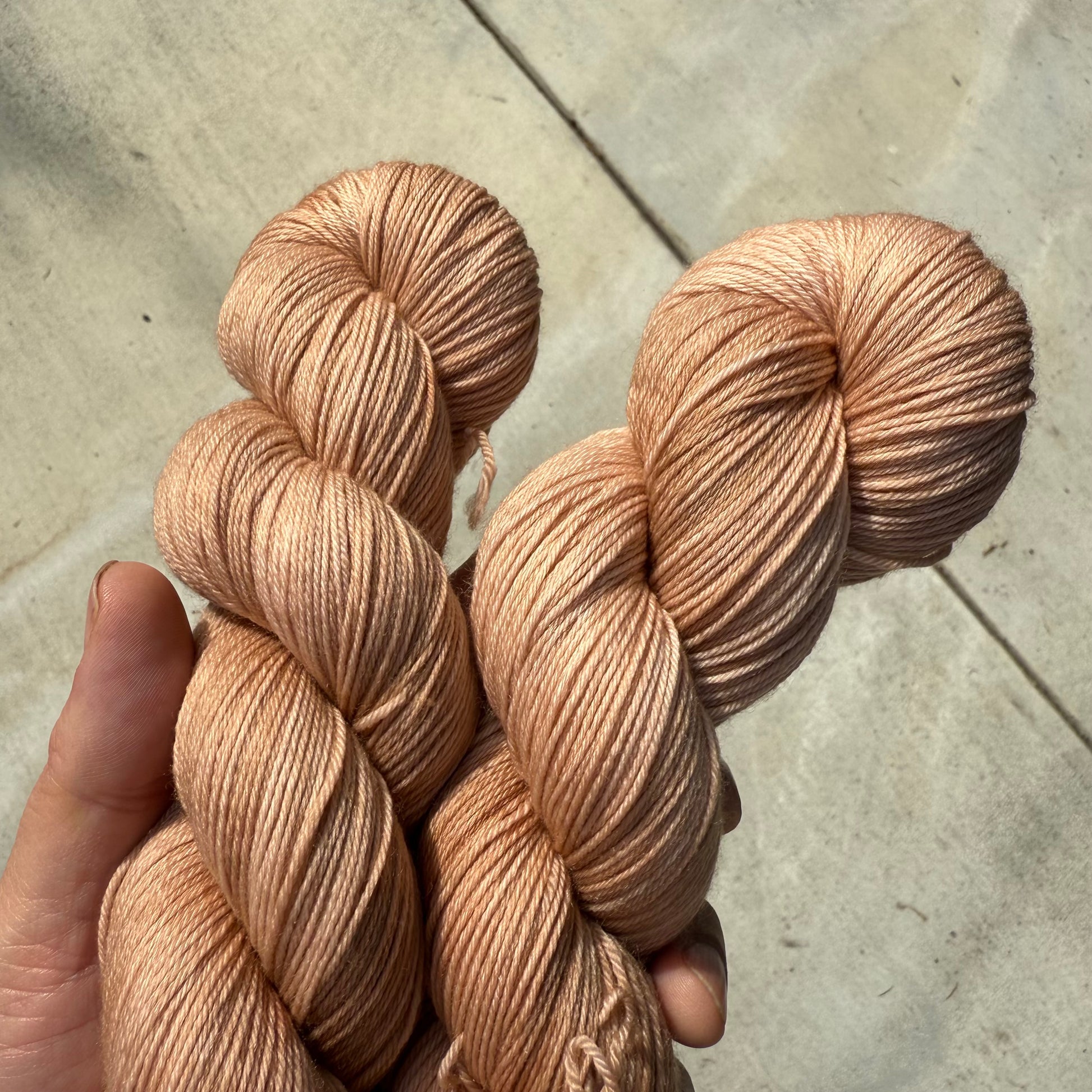 Our yarn is hand dyed in very small batches. Please note: tones and speckling may vary from skein to skein.