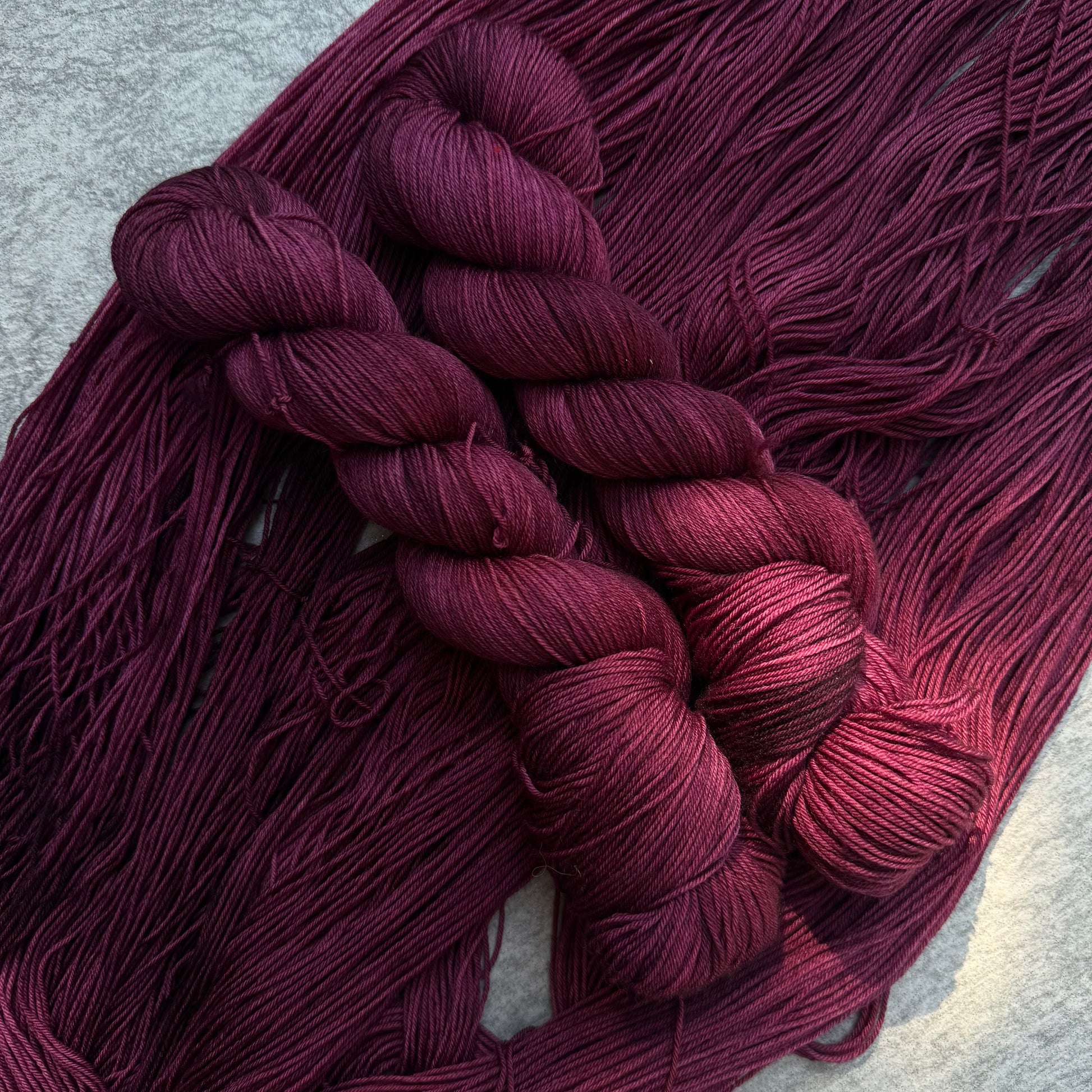 Our yarn is hand dyed in very small batches. Please note: tones and speckling may vary from skein to skein.